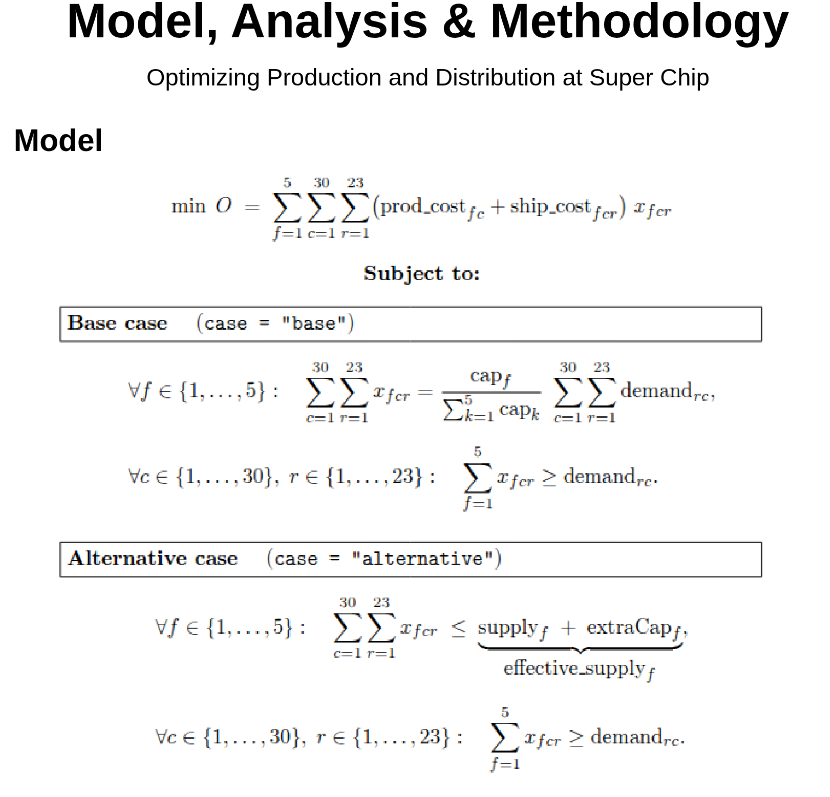 The repository includes: - Python code implementing the transportation LP model. - Utility and helper modules for data handling. - A written report discussing modeling decisions and results.